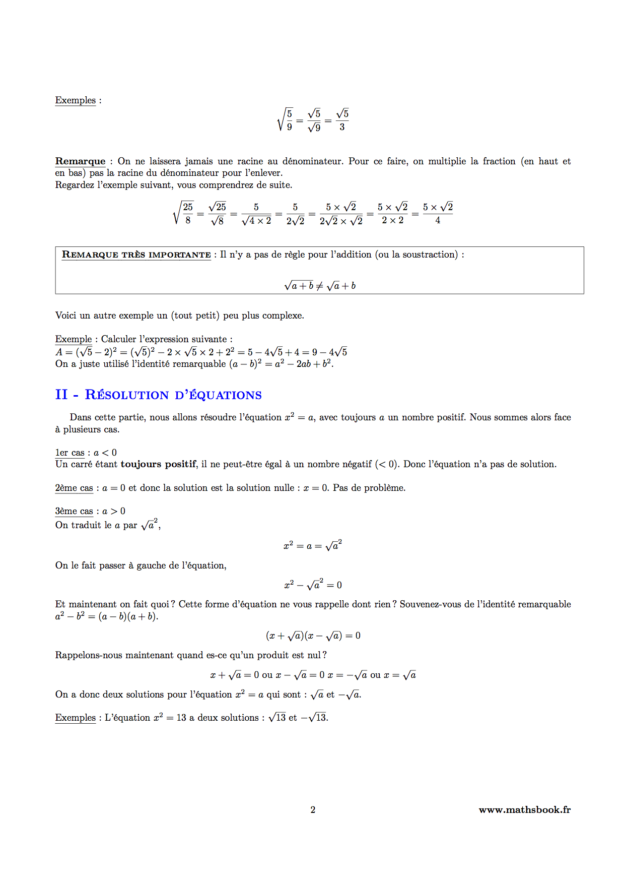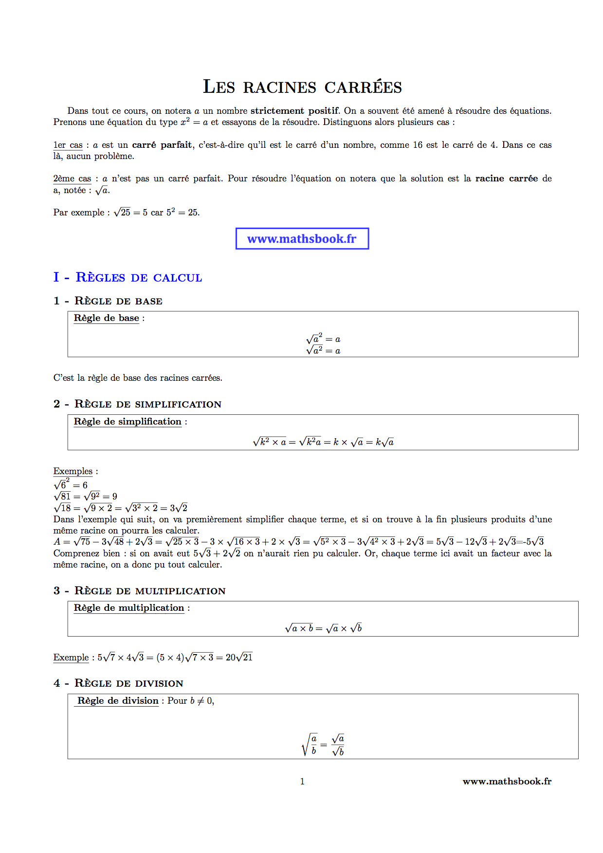 Téléchargez ce cours de maths Racines carrées au format PDF à imprimer pour en avoir une version papier et l'emporter partout avec vous.
