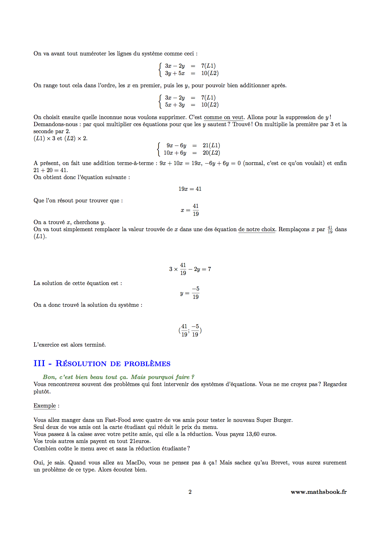 Téléchargez ce cours de maths Système d'équations au format PDF à imprimer pour en avoir une version papier et l'emporter partout avec vous.