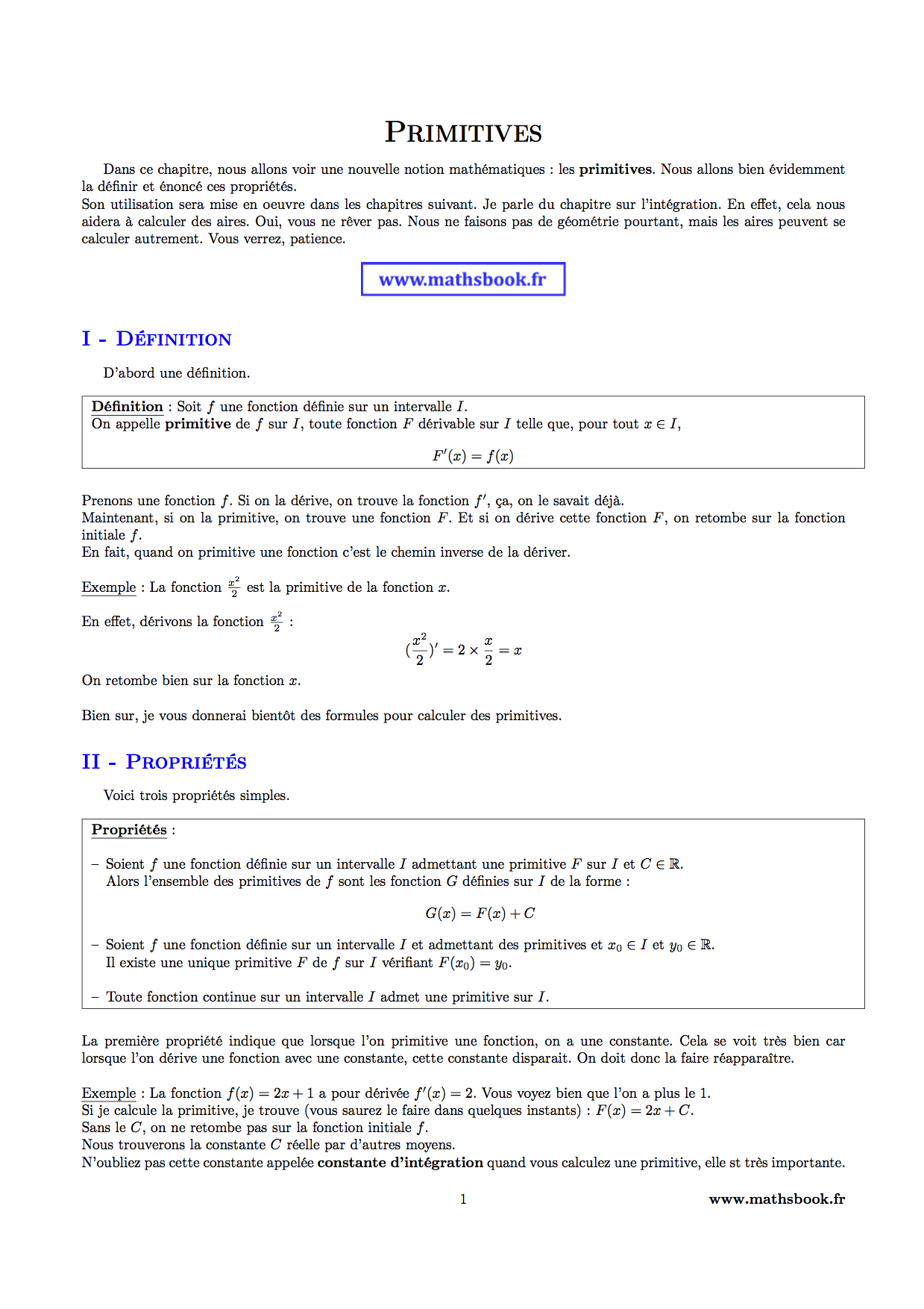 Téléchargez ce cours de maths Primitives au format PDF à imprimer pour en avoir une version papier et l'emporter partout avec vous.