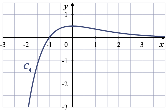 • On considère les quatre courbes C1, C2, C3, C4 ci-dessous. Une de ces quatre courbes est la courbe représentative de la fonction f et une autre la courbe représentative de la dérivée seconde f''.